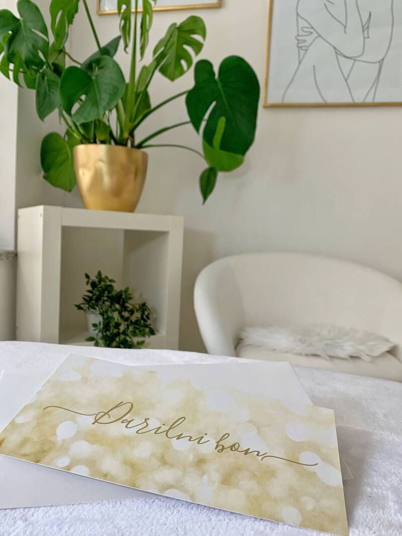 Darilni bon vam lahko pošljemo po pošti in ga dobite že naslednji delovni dan ali ga osebno prevzamete v salonu.